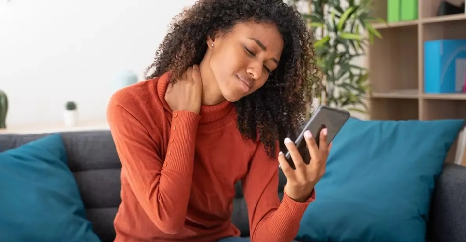 Especialista da Hapvida explica que a inclinação constante da cabeça ao olhar o telefone pode desencadear a Síndrome do Pescoço de Texto