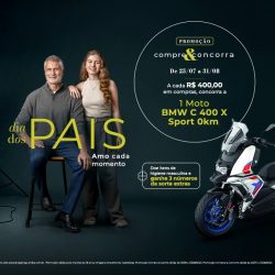 Sorteio de uma moto BMW C 400 X Sport acontece até 31/8; shopping arrecada itens de higiene para o hospital Erasto Gaertner.