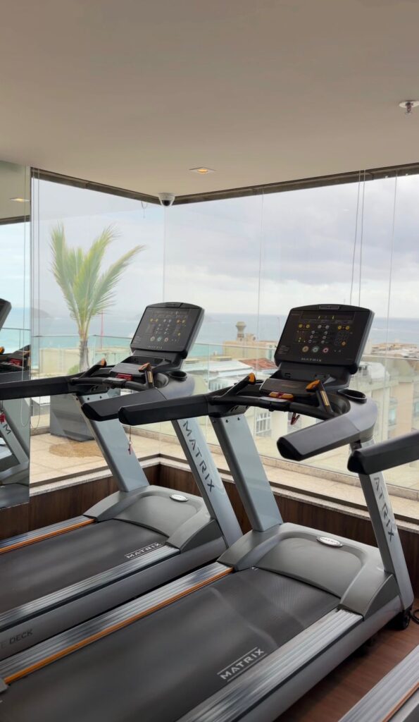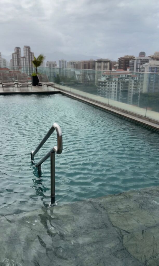 Os quartos são amplos, confortáveis e bem equipados, proporcionando noites de descanso tranquilo. Para quem gosta de lazer, a estrutura do hotel impressiona: tem piscina aquecida, academia e um terraço com vista 360º da Barra, perfeito para apreciar o pôr do sol ou relaxar depois de um dia de reuniões ou passeios.
